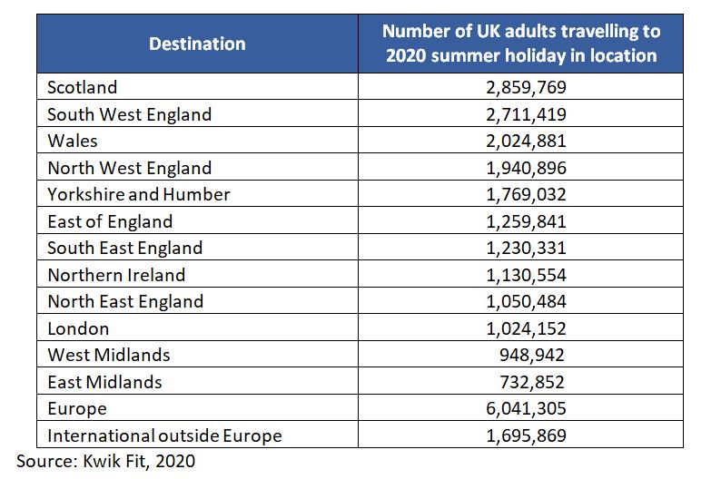 Roger Griggs, communications director at Kwik Fit, said: “Many people will have had to completely rethink their travel plans this summer and have been looking at the best way to ensure their family can still get a break. With so many homes becoming the main workplace and learning area over the past few months, it is only natural people want to get a change of scenery and routine. While we understand the need to get away, we want people to do so safely.